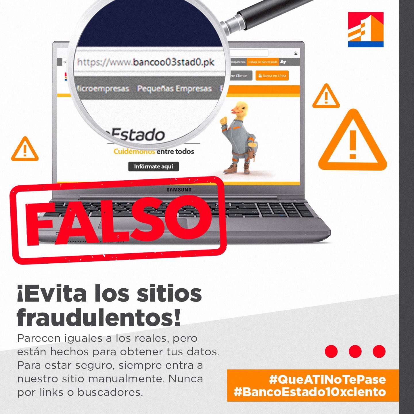 Bancoestado On Twitter Atento Nuestro Sitio Web Es Https T Co Hfpw3iko1k Siempre Entra Manualmente Evita Links Y Buscadores Para No Caer En Sitios Fraudulentos Queatinotepase Revisa Mas Consejos De Seguridad En Https T Co Atog2xluhj