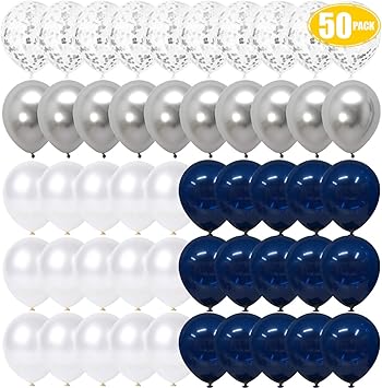 Skyiol Globos 50 Piezas 30 Cm Azul Blanco Plata Metalizado Confeti Helio Globo De Latex Como Fiesta Celebracion Decoraciones Para Ninos Cumpleanos Boda Baby Showers Graduacion Dia De San Set 3 Amazon Es