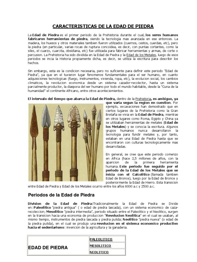 Caracteristicas De La Edad De Piedra 1 Inicio Homo Edad De Piedra
