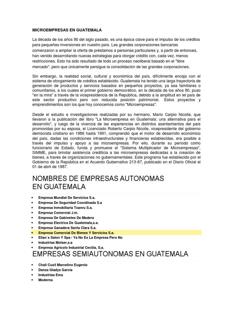 Microempresas En Guatemala Guatemala Politica