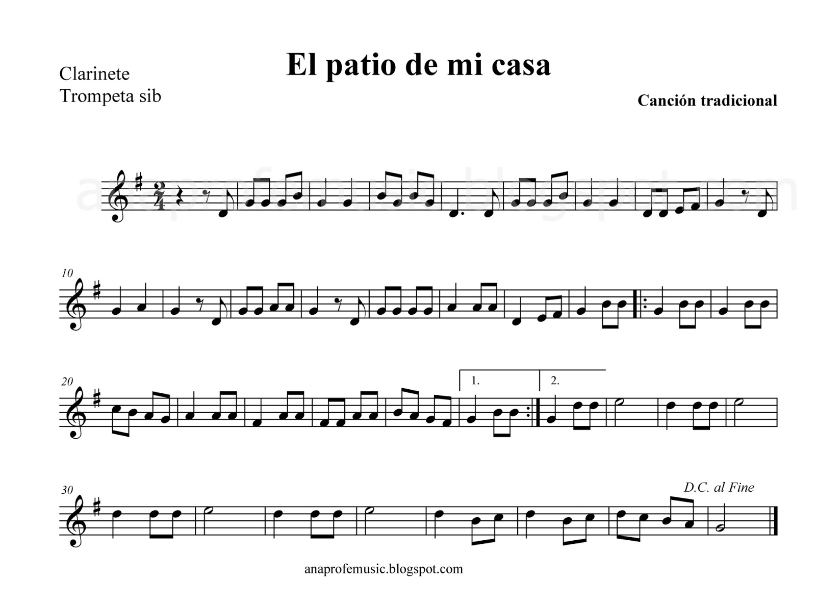 Partitura Cancion El Patio De Mi Casa Partituras Canciones Canciones Flauta