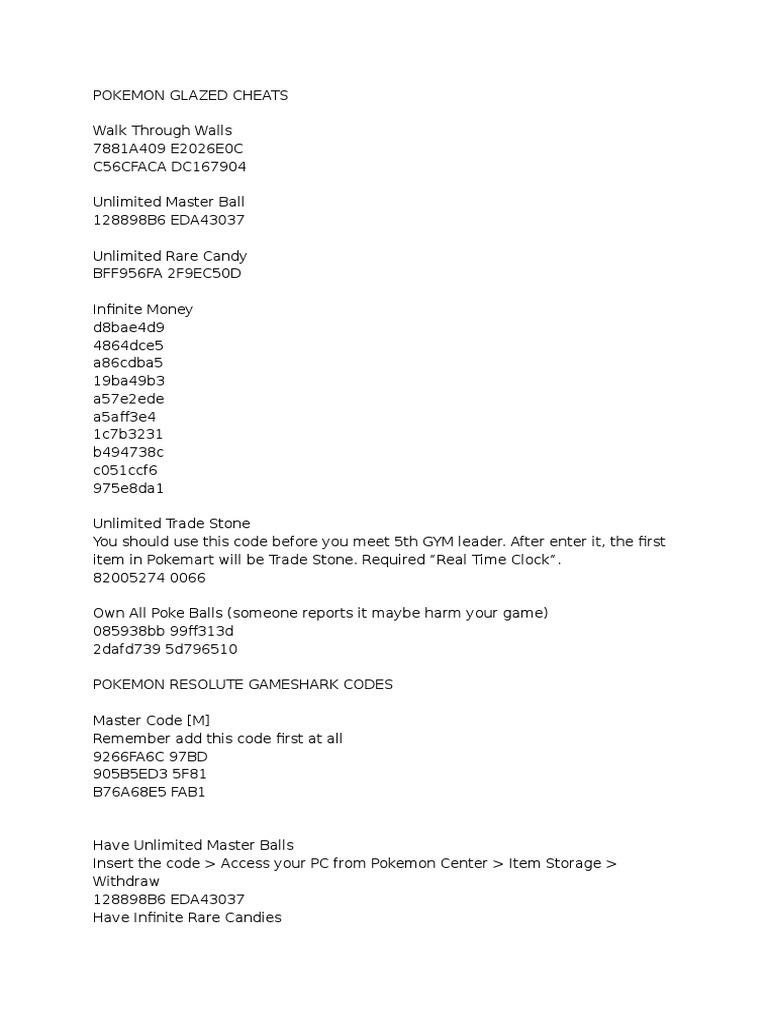 Pokemon Glazed Cheat Codes A Pokemaniac S Code Archive